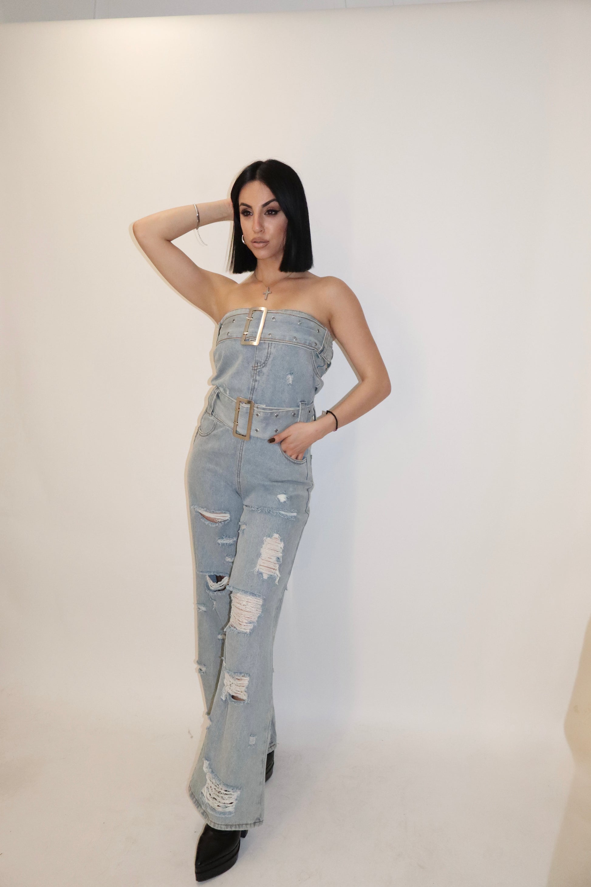 Strapless Jean Jumpsuit